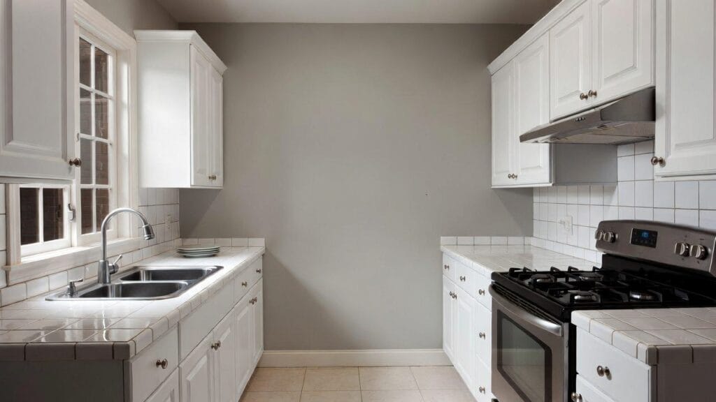 Parallel modular kitchen layout with optimized storage and workflow